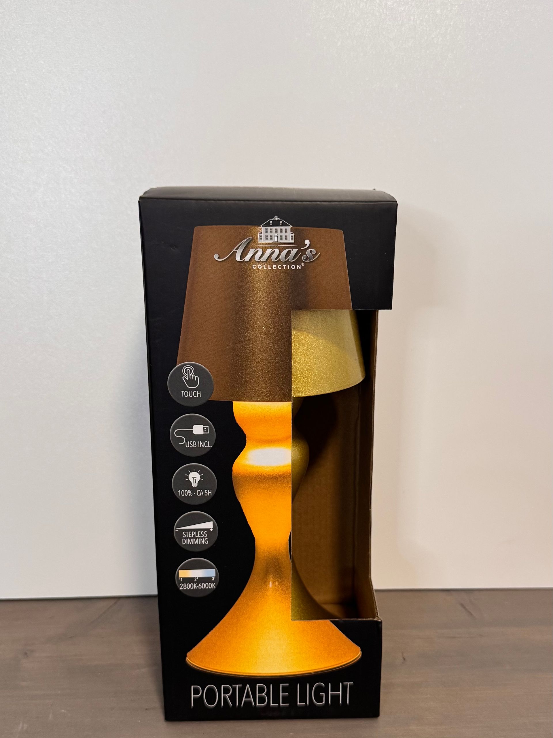 Mooie goud kleurige Touch tafellamp 3 standen, makkelijk oplaadbaar (usb)100% ca 5h.